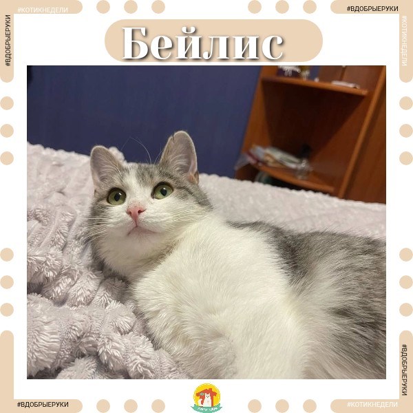 С другими кошками дружит, с маленькой собачкой нейтрально. У Бейлис есть особенность , которая скорее всего является отголоском ее прошлого - она боится , когда ее пытаешься взять, убегает. Кошечка учится доверять человеку, подходит все ближе и ближе , нужно время ❤️